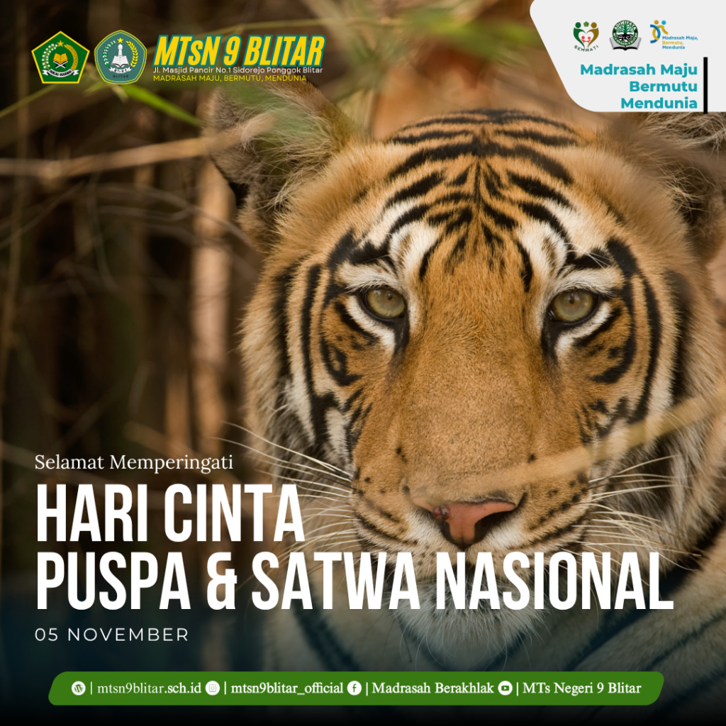 Blitar, 5 November 2025 – Setiap tanggal 5 November diperingati sebagai Hari Puspa dan Satwa Nasional (HPSN). MTsN 9 Blitar turut mengambil bagian dalam peringatan ini dengan mengajak seluruh siswa untuk meningkatkan kesadaran akan pentingnya pelestarian flora dan fauna Indonesia yang kaya raya.